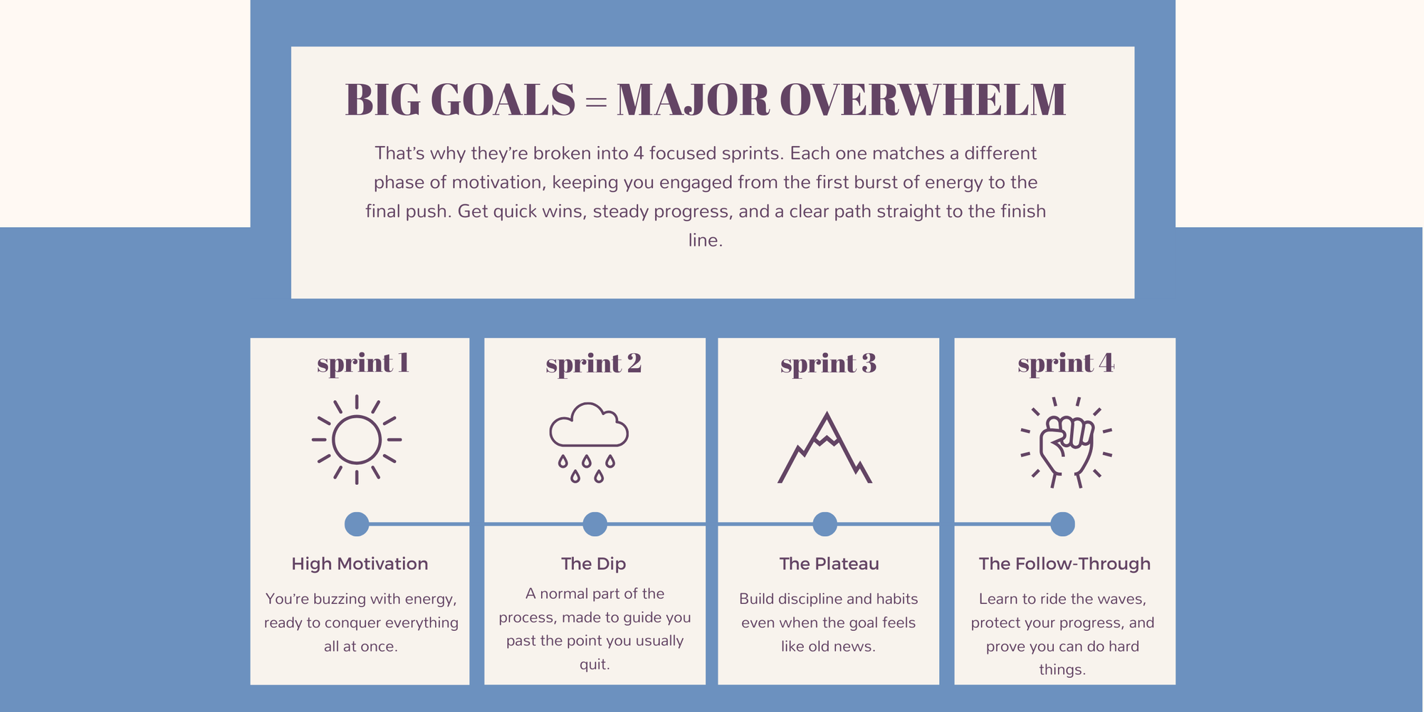 Unlike cluttered planners, this one locks you into one goal at a time so you actually finish.