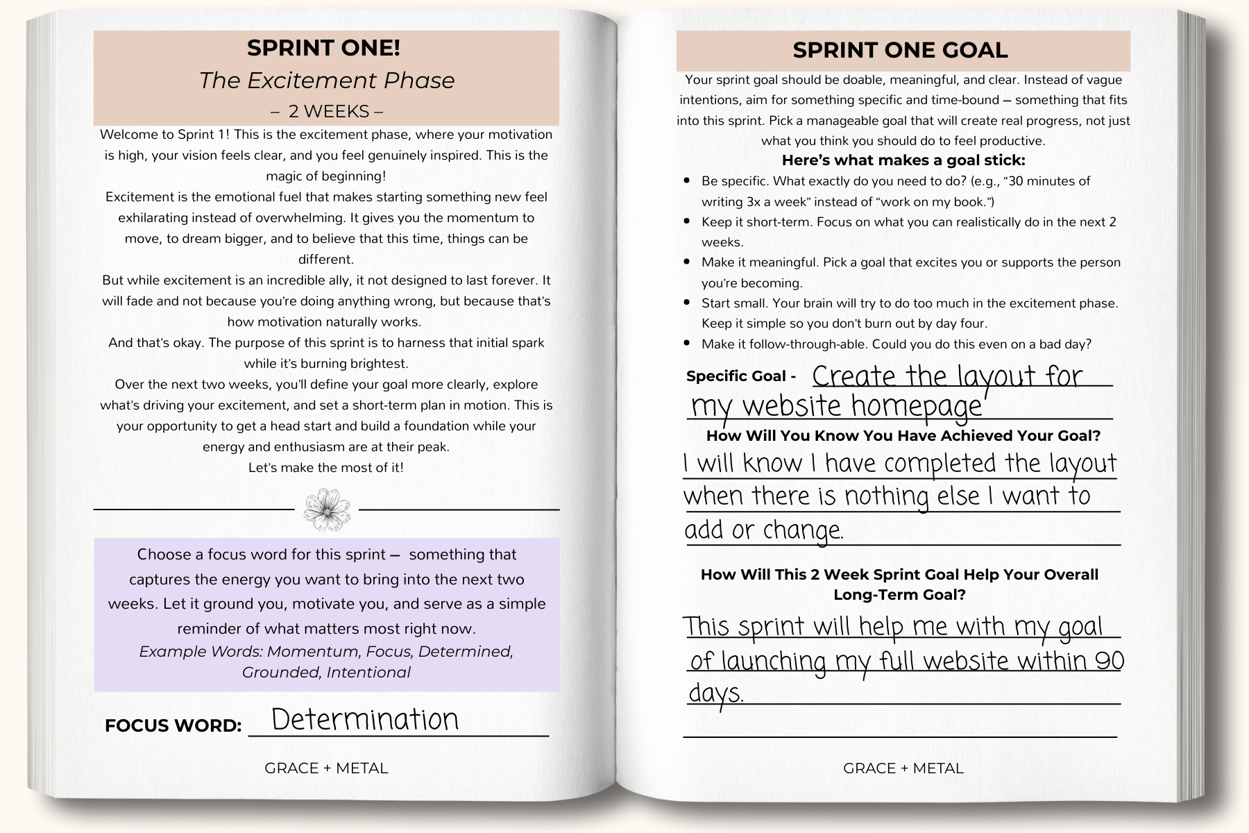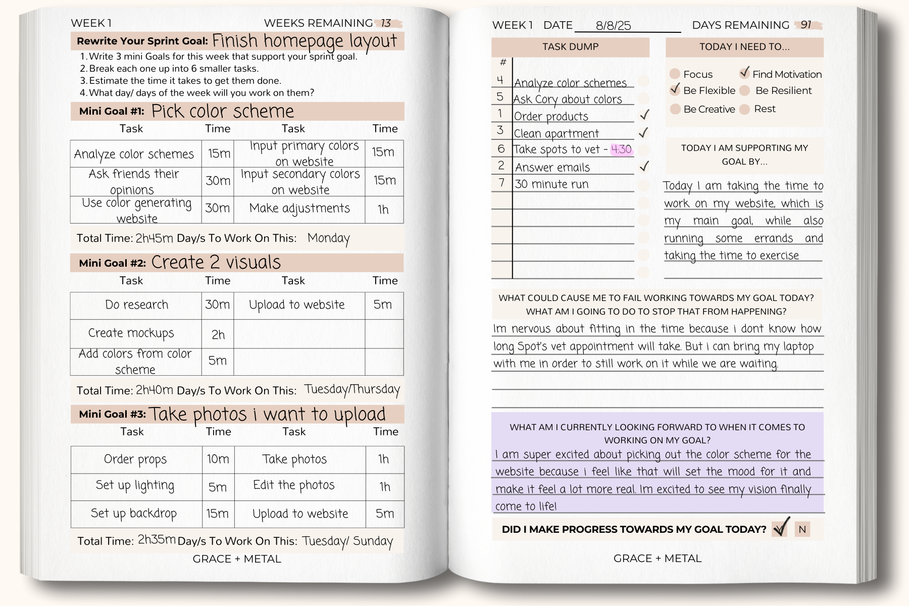 Flip through the planner and see how every page is built to keep you focused, motivated, and across the finish line in 13 weeks flat.